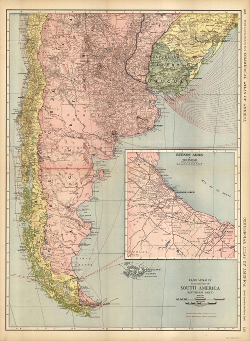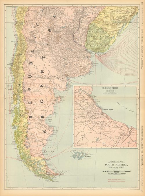 McNally’s 1919 Map of South America (Southern Part) with inset map of Buenos Aires