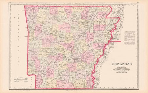Art Source International has amassed a collection of authentic antique maps and images brilliantly highlighting and detailing the state of Arkansas which borders the Mississippi River, Texas, Louisiana, Mississippi, Tennessee, and Missouri. The state is home to the Ozarks region in its northwest that has hiking trails and limestone caves such as Blanchard Springs Caverns. The capital, Little Rock, has a rich history within the American Civil Rights Movement. The Little Rock Nine gave the state national attention in 1957 when the federal government intervened to protect the African-American students trying to integrate a high school in the capital. The school was fully integrated in 1959. Home to many historical figures such as Johnny Cash, Maya Angelou, and Bill Clinton. The state has seven distinct natural regions: the Ozark Mountains, Ouachita Mountains, Arkansas River Valley, Gulf Coastal Plain, Crowley’s Ridge, Arkansas Delta, and Central Arkansas. Art Source International reproductions and vintage maps can be ordered framed or without a frame.