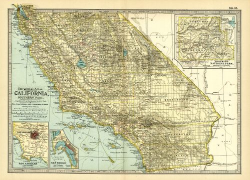 California, Southern Part with inset maps of Los Angeles and San Diego, 1899