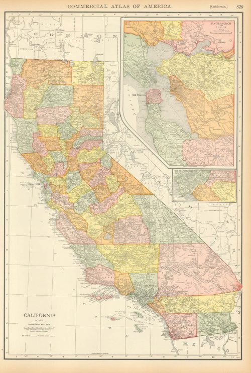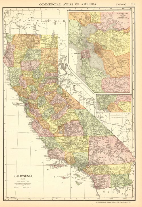 McNally’s 1919 Map of California with inset Map of San Francisco