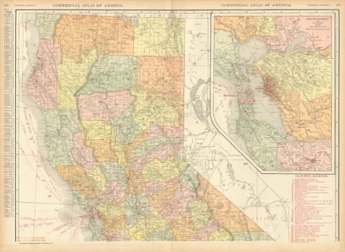 McNally’s 1919 Map of Northern California with inset Map of San Francisco