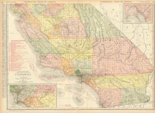 McNally’s 1919 Map of Southern California with inset Maps of Los Angeles and San Diego