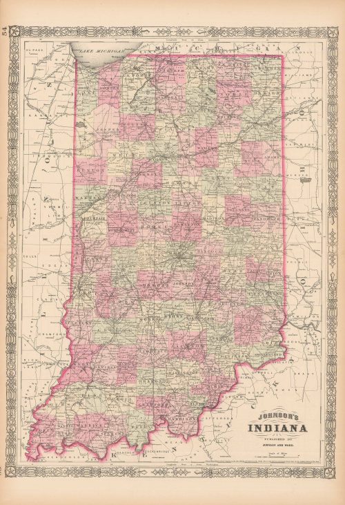 Art Source International has amassed a collection of authentic antique maps and images brilliantly highlighting and detailing the state of Indiana, which borders Illinois, Kentucky, Ohio, Michigan, and one of the Great Lakes, Lake Michigan. The state is home to the 61st National Park in the United States, Indiana Dunes National Park. In the capital of Indianapolis lives the Indianapolis Motor Speedway, which is equipped to seat more than 250,000 people, making the Speedway the world’s largest spectator sporting arena. Indiana earned statehood in 1816 making it the nineteenth state. Art Source International reproductions and vintage maps can be ordered framed or without a frame.