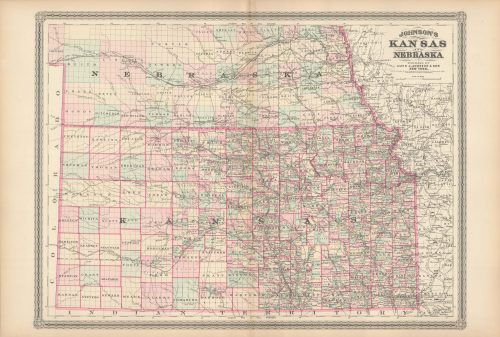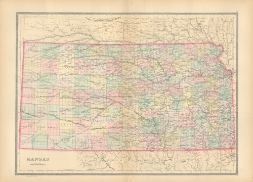 Art Source International has amassed a collection of authentic antique maps and images brilliantly highlighting and detailing the state of Kansas, which borders Colorado, Nebraska, Missouri, and Oklahoma. In 1854 President Franklin Pierce signed into law the Kansas-Nebraska Act, which created the two territories and helped facilitate the construction of a transcontinental railroad. After the act passed, abolitionists and pro-slavery settlers fought over whether the state would be a free state or slave state, resulting in numerous battles between the sides, the events being nicknamed Bleeding Kansas, and ultimately the abolitionists gaining victory making it a free state. Nearly 75 miles of the state’s northeastern boundary is defined by the Missouri River. Points of interest for the state are its many historic sites and trails such as the Lewis and Clark National Historic Trail and the Brown v. Board of Education National Historic Site. Art Source International reproductions and vintage maps can be ordered framed or without a frame.