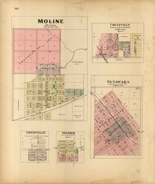 L.H. Evert’s 1887 Map of Moline, Circleville, Netawaka, Tippinville, and Soldier, Kansas