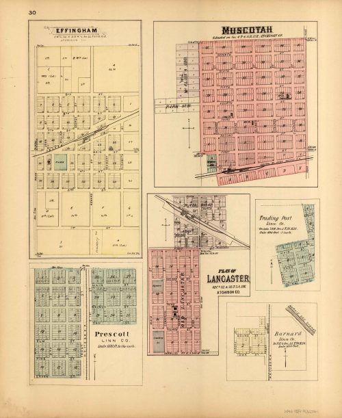 L.H. Evert’s 1887 Map of Muscotah, Effingham, Lancaster, and Prescott, Kansas