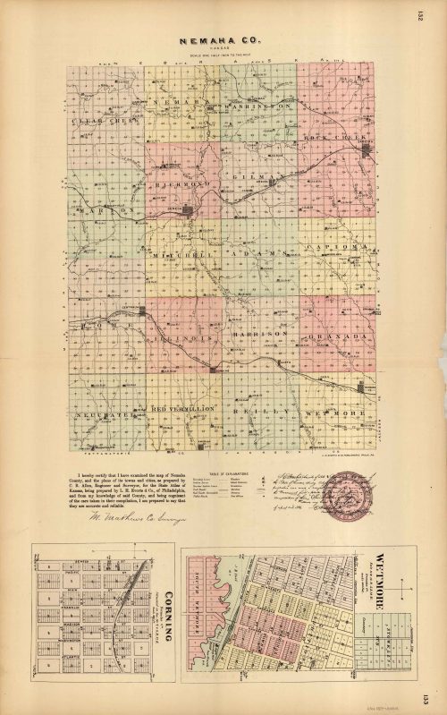L.H. Evert’s 1887 Map of Nemaha County, Wetmore, and Corning, Kansas