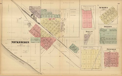 L.H. Evert’s 1887 Map of Nickerson, Dragoon, Barclay, Aurora, Arvonia, Craig City, and Penfield, Kansas