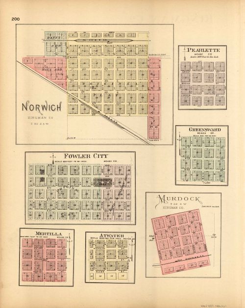 L.H. Evert’s 1887 Map of Norwich, Pearlette, Greensward, Fowler City, Murdock, Mertilla, and Atwater, Kansas