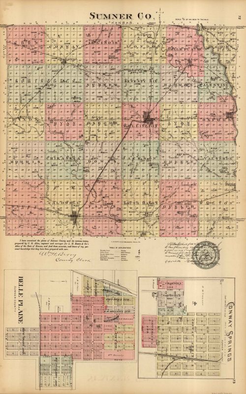 L.H. Evert’s 1887 Map of Sumner County, Conway Springs, and Belle Plaine, Kansas