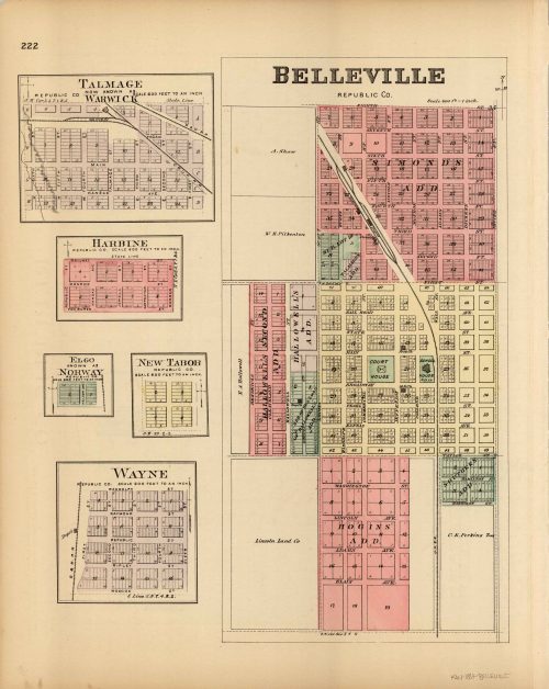 L.H. Evert’s 1887 Map of Belleville, Talmage, Warwick, Harbine, Elgo, Norway, New Tabor, and Wayne, Kansas