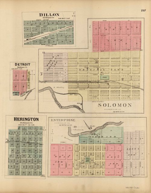 L.H. Evert’s 1887 Map of Dillon, Detroit, Solomon, Herington, and Enterprise, Kansas
