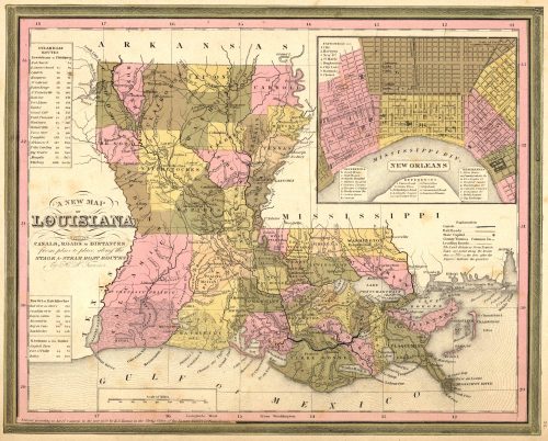 Mitchell’s 1846 New Map of Louisiana with its Canals, Roads, & Distances from place to place along the Stage & Steam Boat Routes