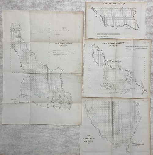 Set of 4 Maps, Louisiana: St. Helena District, SW District, District North of Red River, SE District, 1842 General Land Office