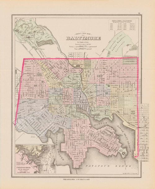Art Source International has amassed a collection of authentic antique maps and images brilliantly highlighting and detailing the state of Maryland, which borders Virginia, West Virginia, Pennsylvania, Delaware, Washington D.C., Chesapeake Bay, Chincoteague Bay, and the Atlantic Ocean. The state’s largest city is Baltimore, historically a major seaport and in 1774 established the first post office system in what became the United States. It was also the Battle of Baltimore against the British in 1814 that inspired the United States national anthem, “The Star-Spangled Banner.” In the northern portion of Maryland is where the Mason-Dixon Line ends. Art Source International reproductions and vintage maps can be ordered framed or without a frame.