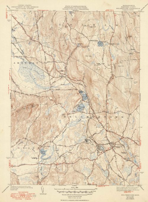 U.S. Geologic Survey 1950 Map of Belchertown, Massachusetts