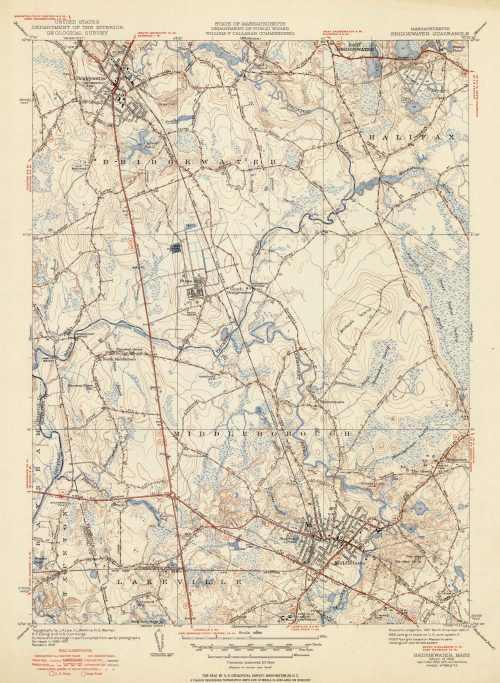 U.S. Geologic Survey 1950 Map of Bridgewater, Massachusetts