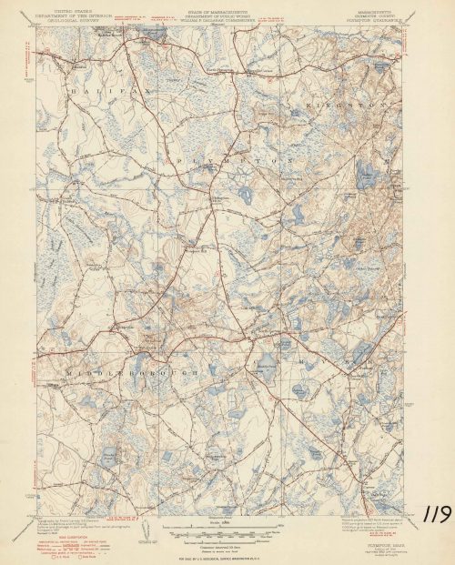 U.S. Geologic Survey 1950 Map of Plympton, Massachusetts