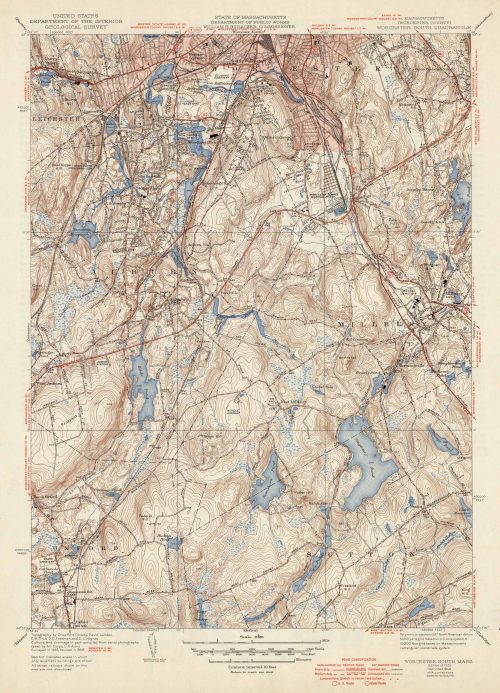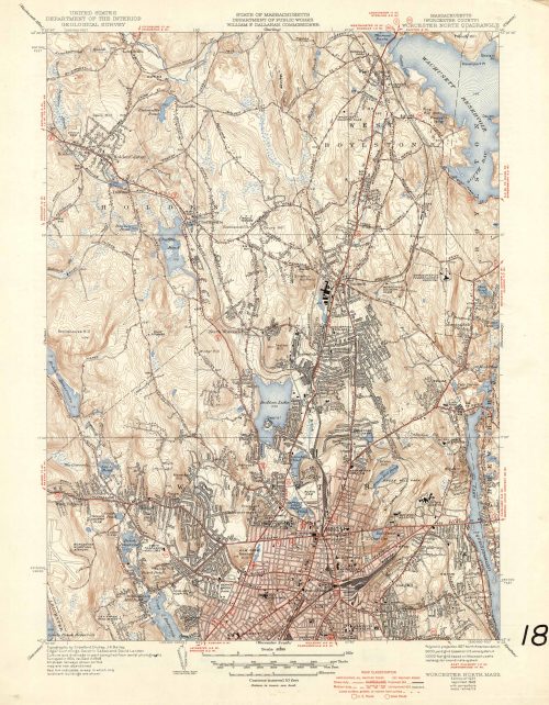 U.S. Geologic Survey 1949 Map of Worcester South, Massachusetts