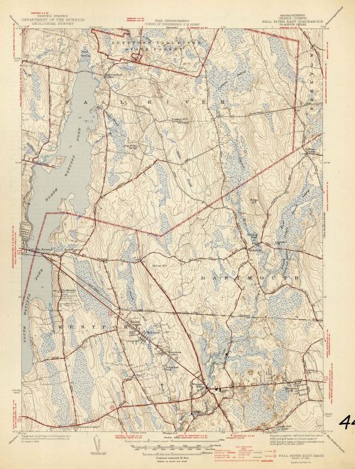 U.S. Geologic Survey 1944 Map of Fall River East, Massachusetts