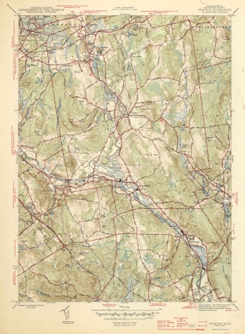 U.S. Geologic Survey 1944 Map of Grafton, Massachusetts