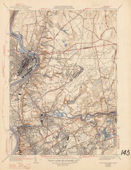 U.S. Geologic Survey 1947 Map of Springfield North, Massachusetts