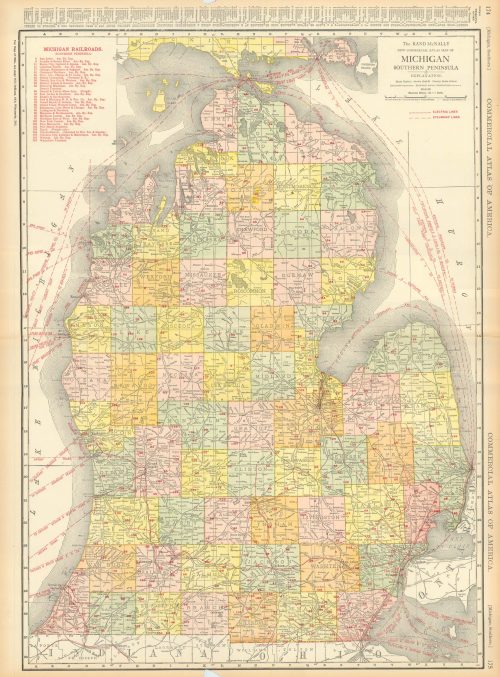 McNally’s 1919 Map of Michigan, Southern Peninsula