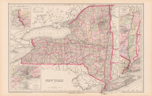 Mitchell’s 1865 County Map of New York, New Hampshire, Vermont, Massachusetts, Rhode Island, and Connecticut