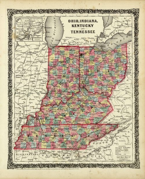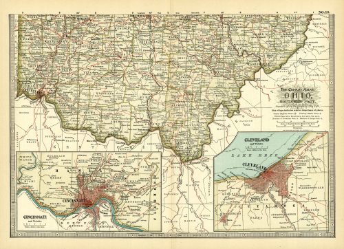 Ohio, Southern Part with inset maps of Cleveland and Cincinnati, 1889