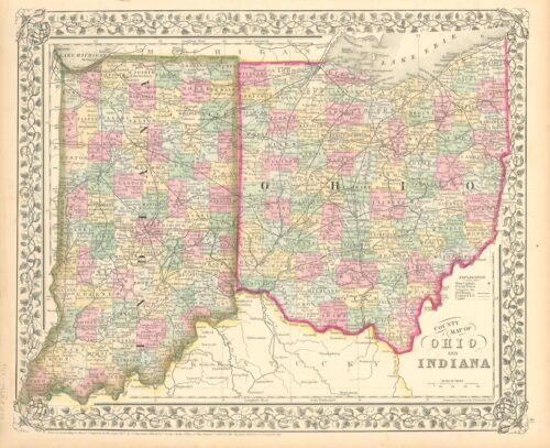 County Map of New York, New Jersey, Pennsylvania, Ohio, Deleware, Maryland, Virginia, West Virginia, and North Carolina