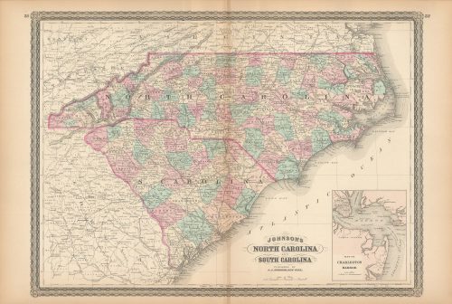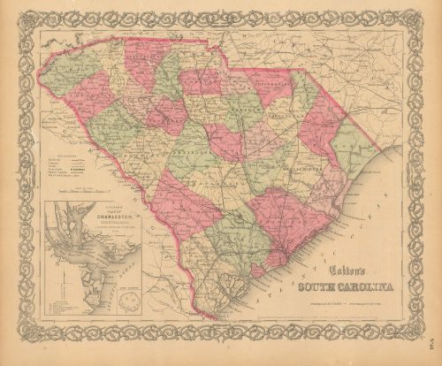 Art Source International has amassed a collection of authentic antique maps and images brilliantly highlighting and detailing the state of South Carolina, which borders North Carolina, Georgia, and the Atlantic Ocean. Points of interest for the state include Congaree National Park, Huntington Beach State Park, and Table Rock State Park. A portion of the Blue Ridge Mountains can be found in the northwestern part of the state while the Piedmont Mountains can be found in the southeast. Over 67% of the state is forested land. South Carolina became the 8th state in 1788. Art Source International reproductions and vintage maps can be ordered framed or without a frame.