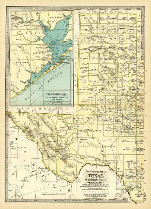 Texas, Western Part and Panhandle with inset of Galveston