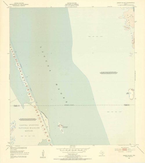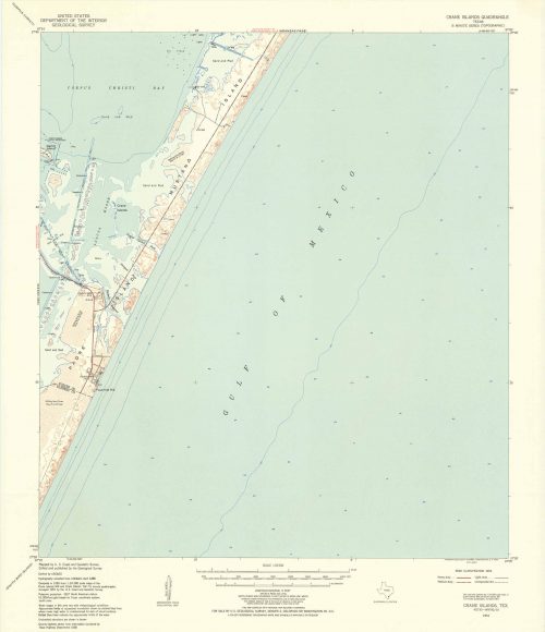 USGS 1951 Crane Islands Quadrangle, Texas, Padre Island, Mustang Island, Corpus Christie