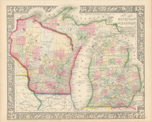 Mitchell’s 1865 County Map of Michigan and Wisconsin