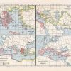 Four Maps showing Homeric Greece, Kingdoms of Succession of Alexander, The Mediterranean Lands, and The Roman Dominions