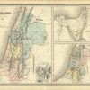 Plate consists of three maps: Palestine in the time of Jesus Christ, the route taken by the Israelites out of Egypt, and the Tribes of Israel. Inset map of Jerusalem. Beautiful topographic detail, good coloring.
