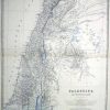This large-scale map produced by Geographer to the Queen of Scotland, Alexander Keith Johnston was published in 1861 in his “Royal Atlas of Modern Geography.” Johnston apprenticed to James Kirkwood & Sons, Engravers in 1820. In 1826, he partnered with his brother William in W. & A.K. Johnston. He Died July 9th, 1871 in Yorkshire.Outlines on this map of Palestine are hand colored. The incredible level of detail provided is unique to this Scottish mapmaker. This map shows all topography including mountains and physical features, rivers and lakes, cities and towns, provinces and regions, railroads, forts, wells. The decorative border shows latitude and longitude to less than a degree.