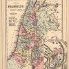 This map was made by S. Augustus Mitchell for “Mitchells New General Atlas” published in 1885, by WM. M. Bradley & Co. The well maintained maps in this atlas feature Mitchell’s characteristic pastel coloring and abundant details of geographical features. Palestine or, the Holy Land is illustrated, with an inset map of Modern Jerusalem, showing the Decapolis. Details include the names of countries, cities, deserts, transportation routes, and rivers. These 1885 maps offer a fascinating perspective of areas that have since undergone significant growth and change, in addition to their value as great examples of Mitchell’s work.