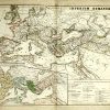 From Atlas Antiquus, Twelve Maps of the Ancient World for Schools and Colleges by Dr. Henry Kiepert, published in English with maps in Latin. This map shows the ancient Roman Empire at two different scales, with hand-applied outline color showing the divisions into prefects. This map also features exceptionally bright coloring.