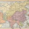 This map of Asia was produced by George F. Cram for “Crams Modern Atlas – Deluxe Edition,” published in 1901. The maps from this atlas are more detailed then the maps from most other Cram atlases. The George F. Cram Company was established in 1869 and the Cram name quickly became synonymous with accuracy and innovation. Map regions are outlined and highlighted in printed pastel coloring. Cities, towns, major transportation routes, and topographical features are noted. A fine map in coloring and detail.