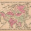 Near the forefront of the atlas publication industry for a quarter century was mapmaker and aggressive marketer Alvin Jewitt Johnson. Around 1860, in a transaction that remains somewhat mysterious, Johnson acquired a set of detailed plates from J.H. Colton, one of the foremost mapmakers of the century, and used them to print the Johnson atlas that was to find its way into homes across the country. Johnsons New Illustrated Family Atlas was first published in 1860, and today these maps have become prized collectibles and true works of cartographic art. The attention to detail and fine hand-coloring of these maps make them some of the best collectibles maps from the 19th century. This single-page map illustrates Asia. Countries, regions, cities, towns, common roads, and topographical features are noted.