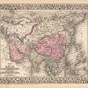 This hand colored map was made in 1877 by S. Augustus Mitchell for “Mitchells New General Atlas”. Asia is illustrated on this map. Countries are distinguished by color. Other details include the names of countries, and important cities, rivers, mountains, and lakes.
