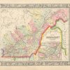 In 1860 S. Augustus Mitchell Jr. took over his father’s map publishing business and in that year he started publishing Mitchell’s New General Atlas. Editions of the new general were issued annually until 1887. Mitchell Jr. continued publishing this atlas until 1879. The editions from 1880 to 1887 were published by Wm. M. Bradley. This map published in 1865 is a wonderful example of Mitchell’s map-making prowess with beautiful original hand-coloring.