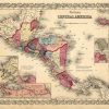 Art Source International is proud to offer this map from the 1860 edition of Coltons General Atlas. Colton atlases, especially those from the late 1850’s, have become increasingly rare. The General Atlas was the first single edition atlas published by the Colton brothers succeeding the expensive two volume Atlas of the World. These maps have the signature ‘ inch Colton border surrounding each map. The Colton firm refused to compromise quality, choosing to compete for sales in the finer quality international market rather than the cheap domestic one. Because of this, all maps were engraved by steel plates rather than by wax engraving which was the most common method used at this time. This map of Central America is very detailed with identification of counties, cities, townships, railroads, common roads, canals, creeks and rivers. In the insets, the map shows Panama, the city of Panama, the harbor of San Juan De Nicaragua, the Nicaragua Route, and Manzanilla I. Aspinwall City. The map also contains some notes on geography, history, and discoveries. Each map has beautiful muted red, green, tan, pink, and yellow hand coloring.