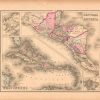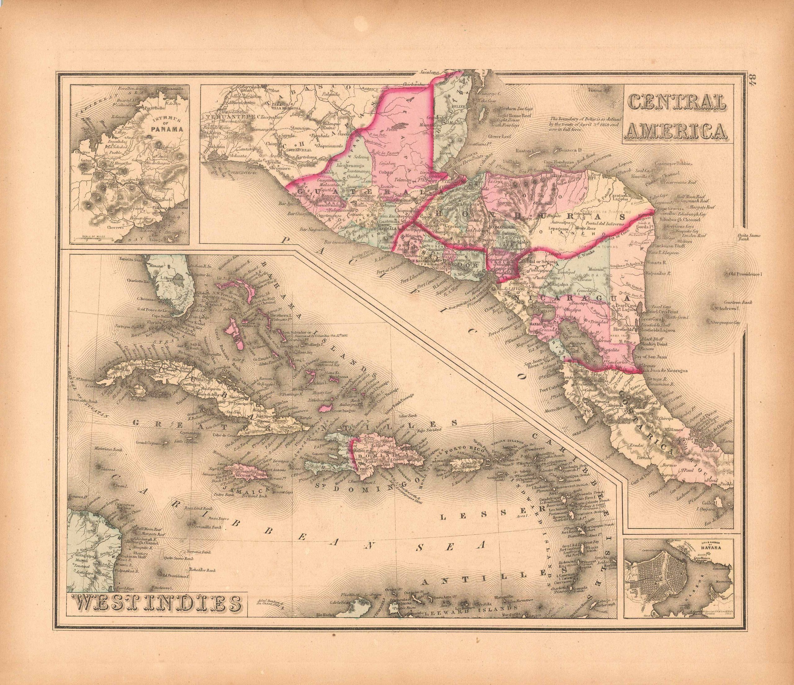 Made for the 1873 “Grays Atlas of the United States with General Maps of the World ” by O.W. Gray, a Civil and Topographical Engineer. Bright pastel hand coloring, fine detailing and simple lined border complete the maps within this atlas. Countries, cities, rivers, lakes, railroads and topographical features are illustrated and noted.