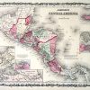 This antique map came from Johnsons New Illustrated (Steel Plate) Family Atlas, published in 1863, by Johnson and Ward. These maps are some of the most colorful and accurate maps produced in the 1860’s. Johnson maps are characterized by hand coloring in red and green and distinctive borders, including iron scrollwork and a Celtic design. This beautiful map of Central America includes insets of the Isthmus of Panama, the Harbor of San Juan de Nicaragua, the “Nicaragua Route,” Panama and Aspinwall City.