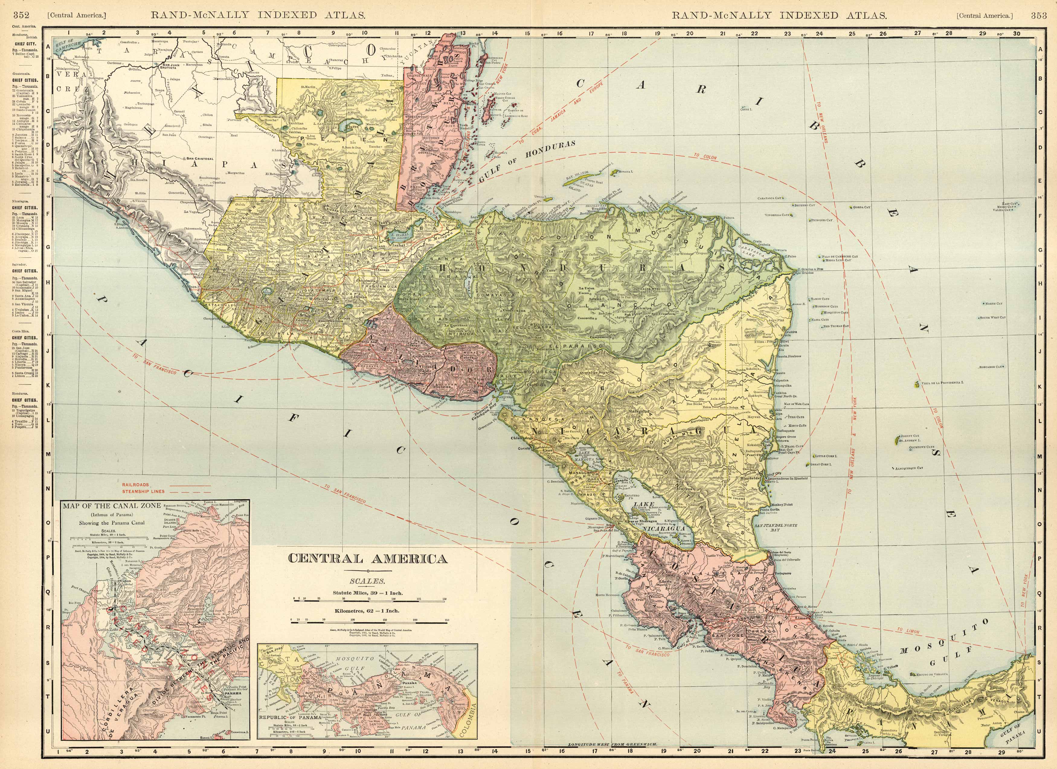 McNally’s 1923 Map of Central America with insets of the Panama Canal