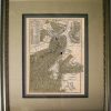 This finely detailed city map is from the 1896 Johnsons Universal Cyclopedia. Streets, parks, cemeteries and public buildings are depicted. This antique map of Boston is framed with a modern feel using a silver ornate frame, with a light sage/ochre fabric outer mat, a black beaded fillet and a charcoal inner mat. This would fit well in anyone’s home!’