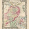 In 1860 S. Augustus Mitchell Jr. took over his father’s map publishing business and in that year he started publishing Mitchell’s New General Atlas. Editions of the new general were issued annually until 1887. Mitchell Jr. continued publishing this atlas until 1879. The editions from 1880 to 1887 were published by Wm. M. Bradley. This map published in 1865 is a wonderful example of Mitchell’s map-making prowess with beautiful original hand-coloring.