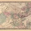 This hand colored map was made for “Mitchells New General Atlas” published in 1877 by S. Augustus Mitchell. Boston is illustrated on this map. Sections of the city are highlighted by color. Other details include the names of streets, important monuments, railroads, and rivers.